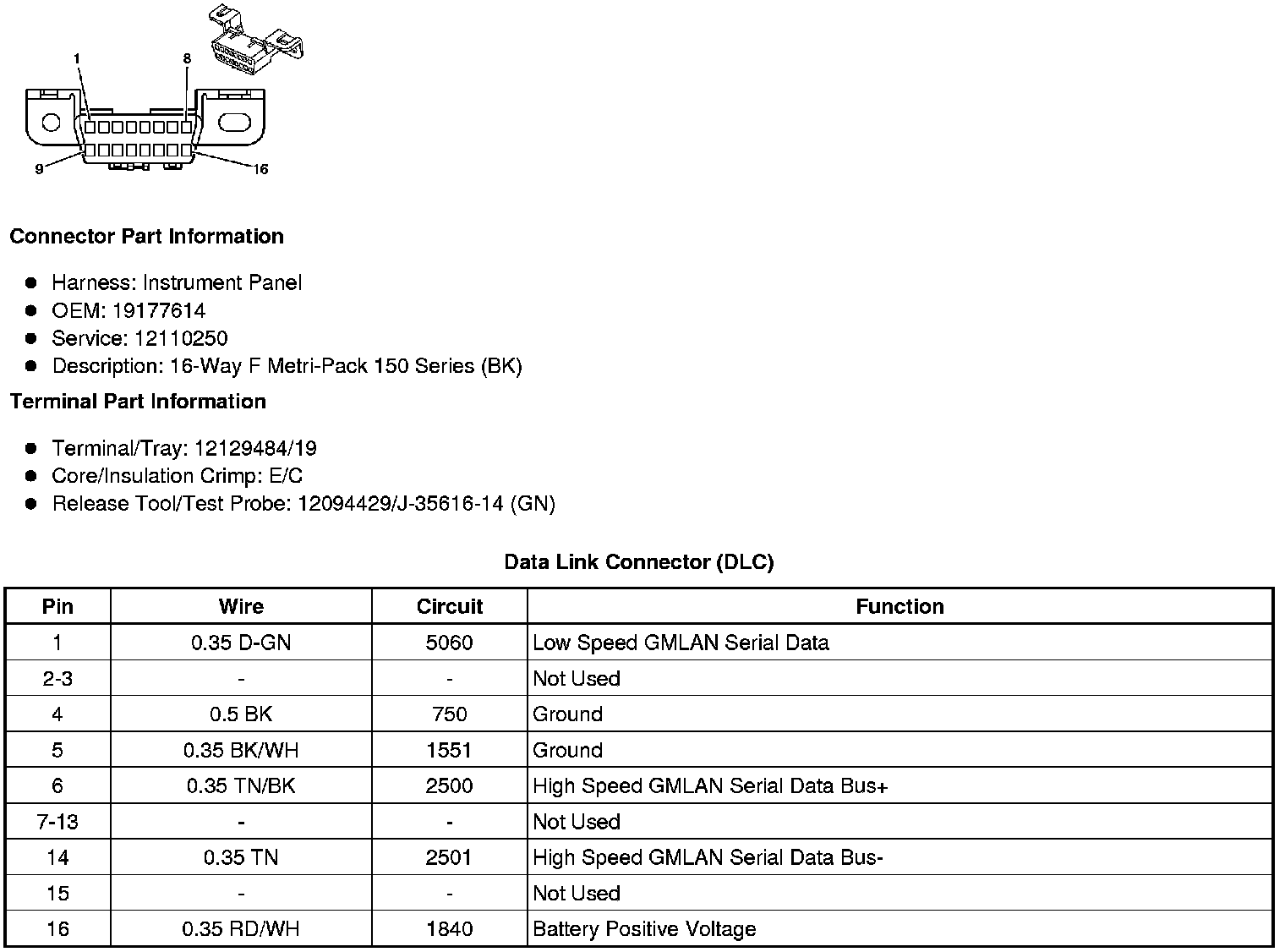 Data Link Connector: Diagrams