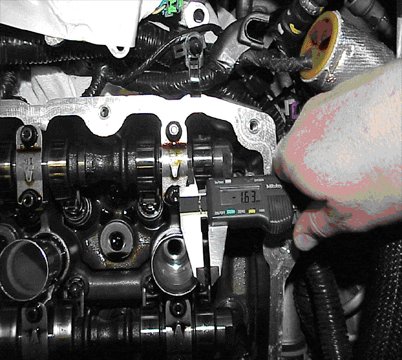 - Measure and record the distance between the camshaft cap and the camshaft lobe.