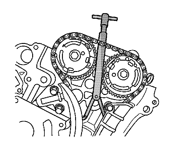 14. Hand tighten the Timing Chain Retention Tool. If installed correctly, there should be a small amount of slack in the timing chain between the camshaft position actuator sprockets.