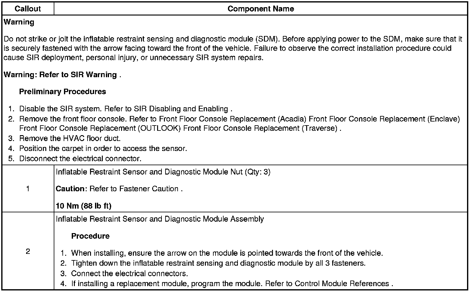 Inflatable Restraint Sensing and Diagnostic Module Replacement