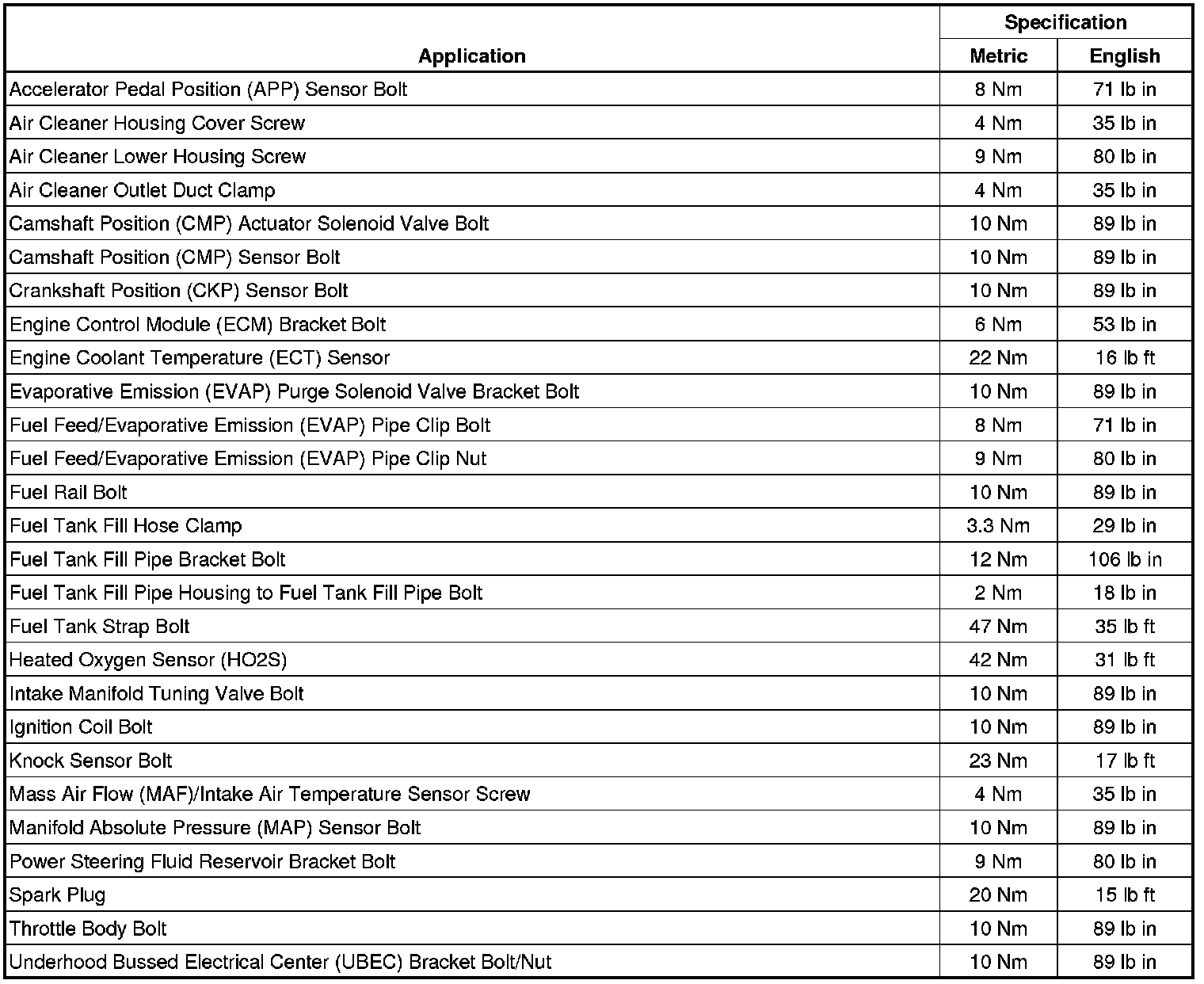 Fastener Tightening Specifications