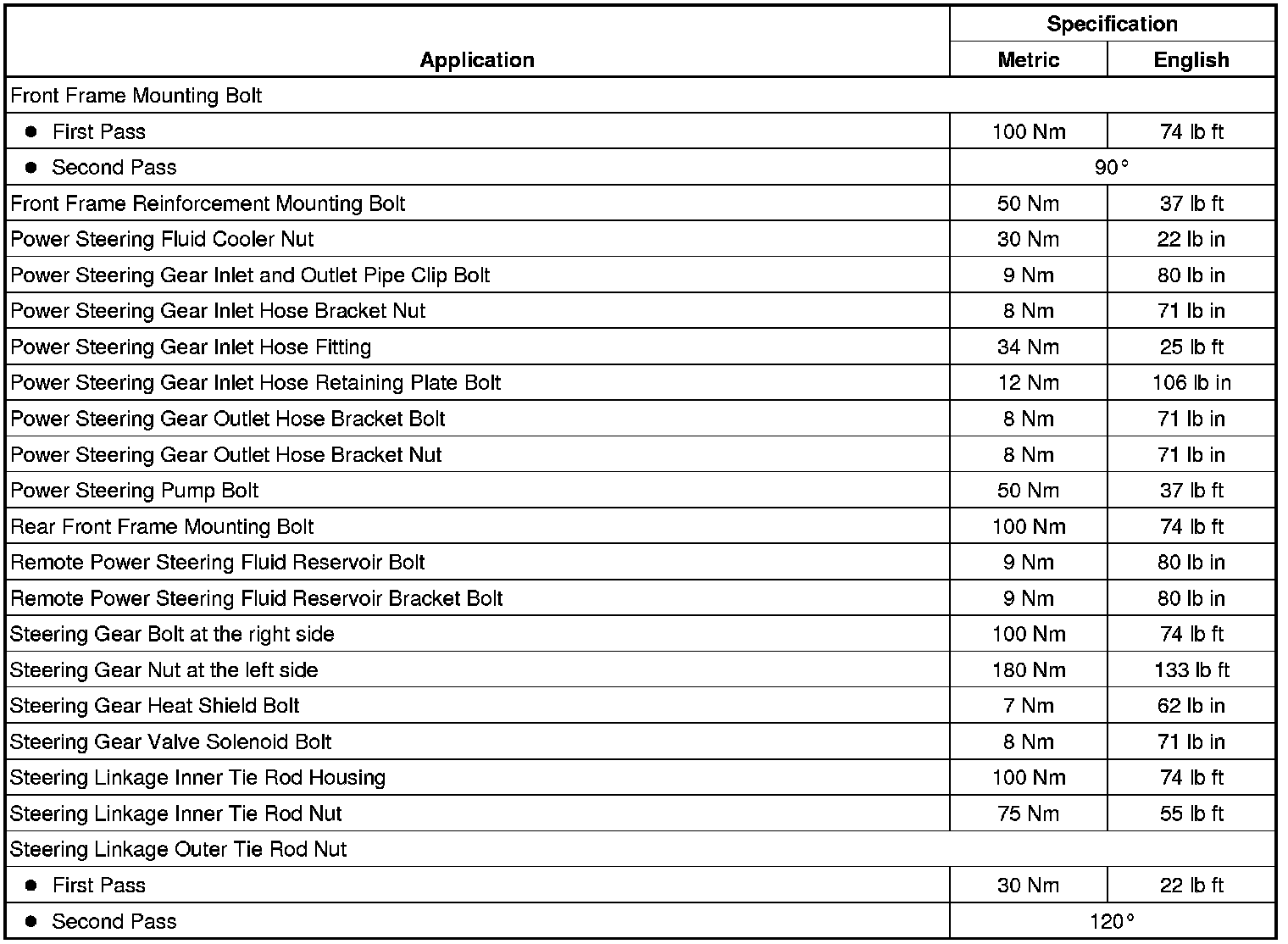 Fastener Tightening Specifications
