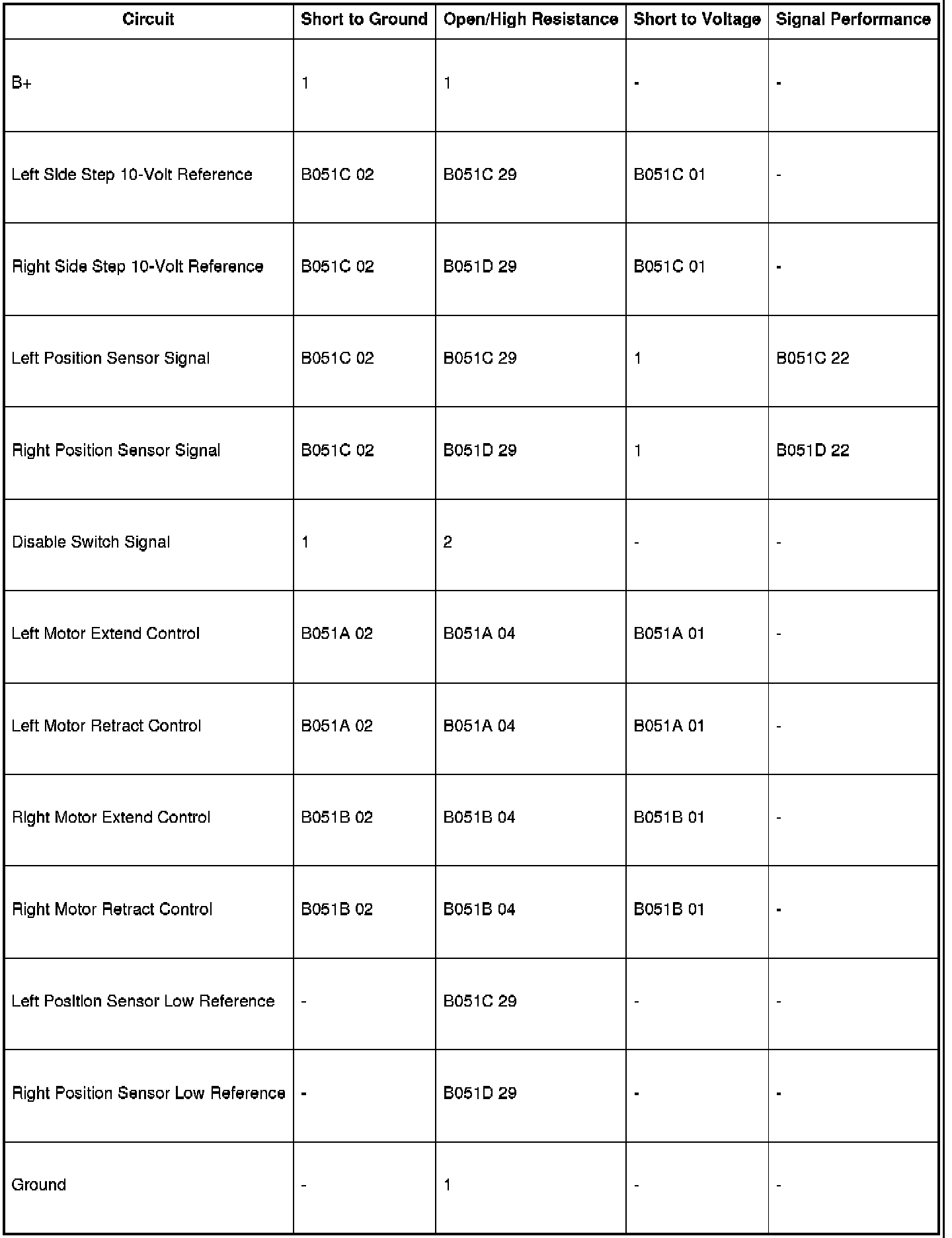 DTC B051A 01:Left Side Assist Step Motor Control Circuit Short to Battery
