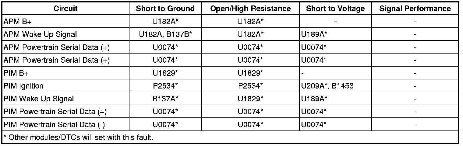 The powertrain serial data circuits between the SDGM and the APM or the PIM are open.