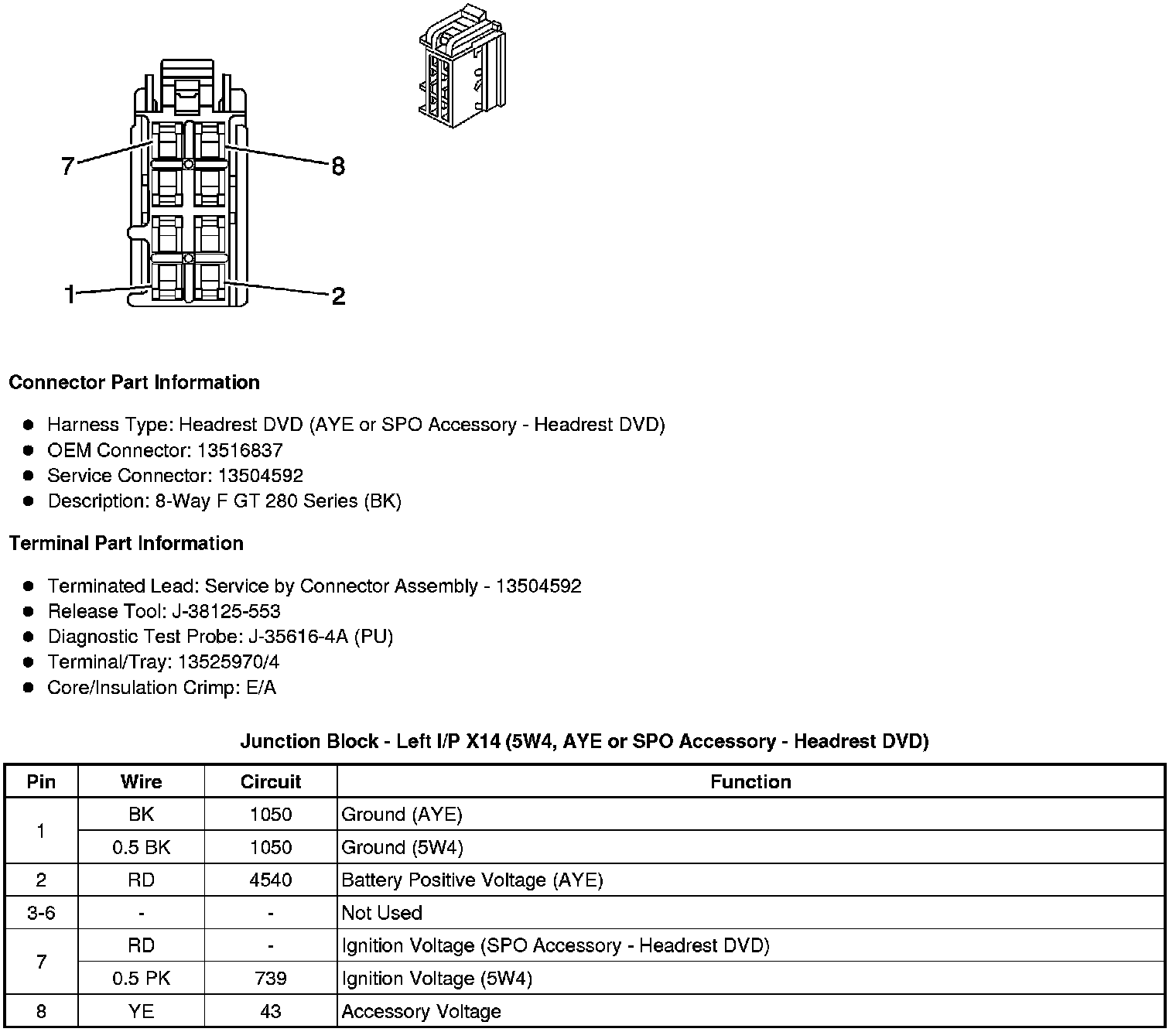 Junction Block - Left I/P X14 (5W4, AYE or SPO Accessory - Headrest DVD)