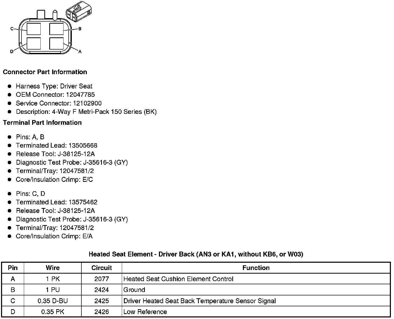 Heated Seat Element - Driver Back (AN3 or KA1, without KB6, or W03)
