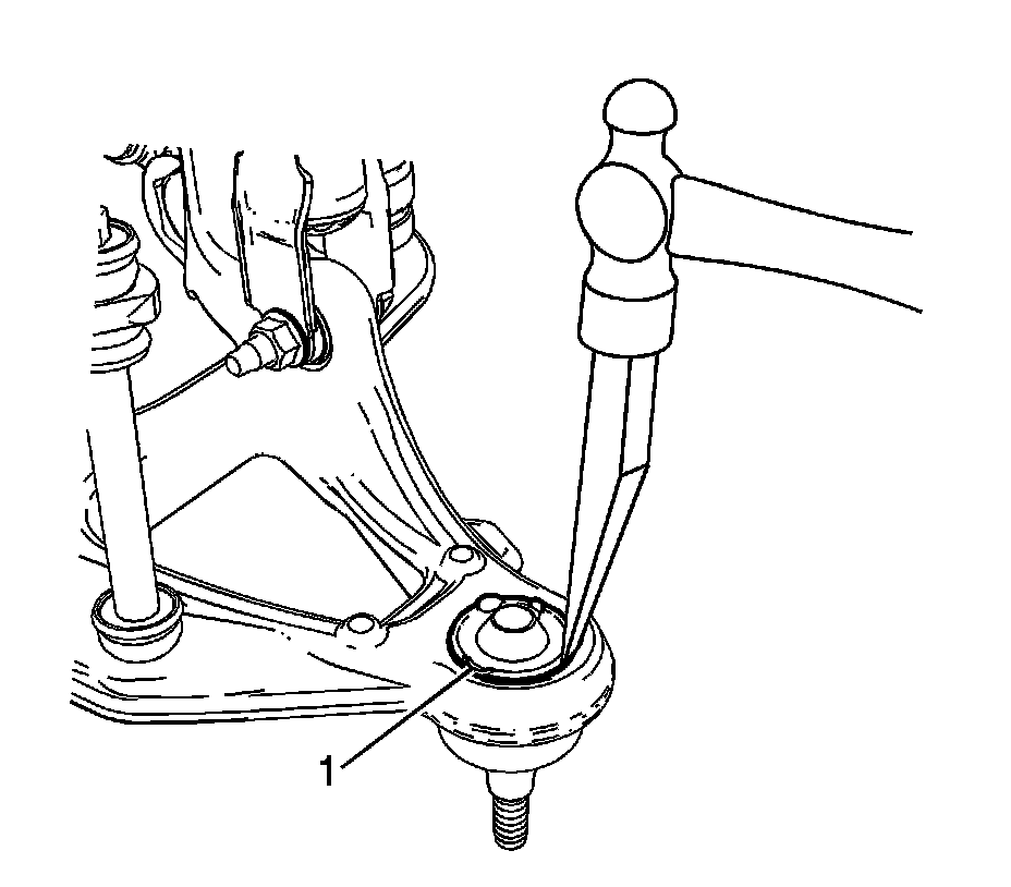 3. Using a hammer and a chisel, remove the lock tabs (1) from the lower ball joint.