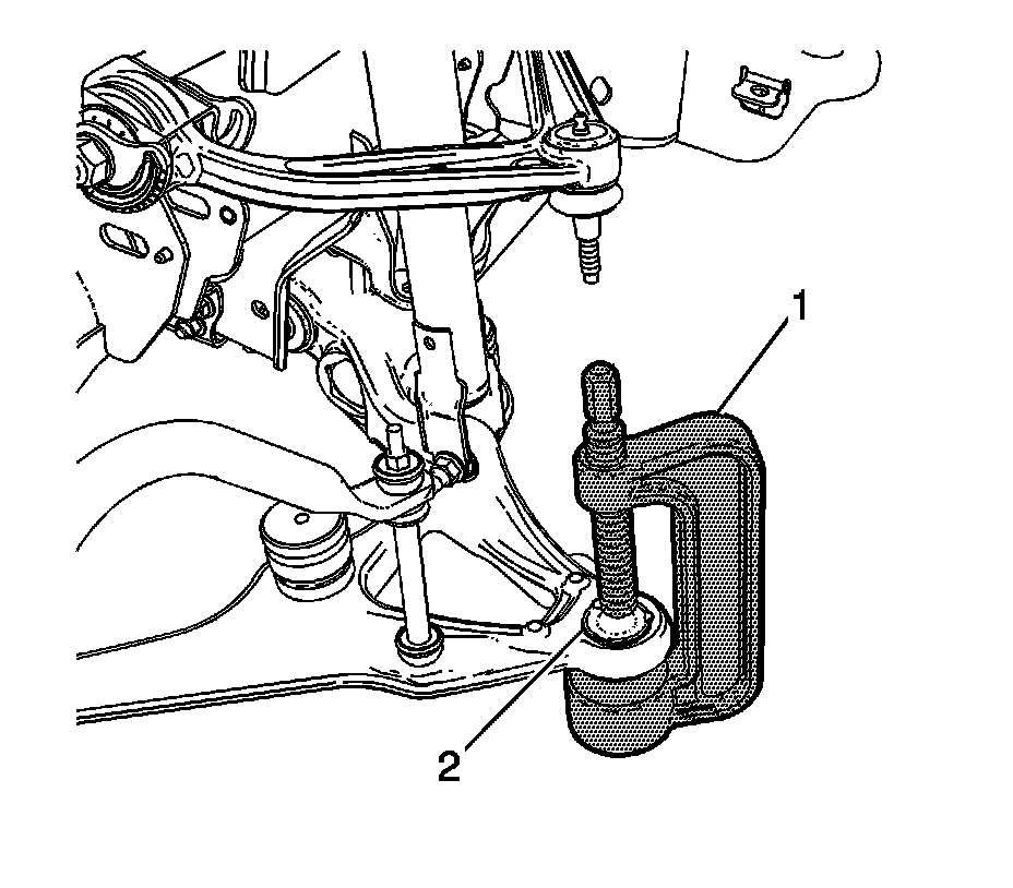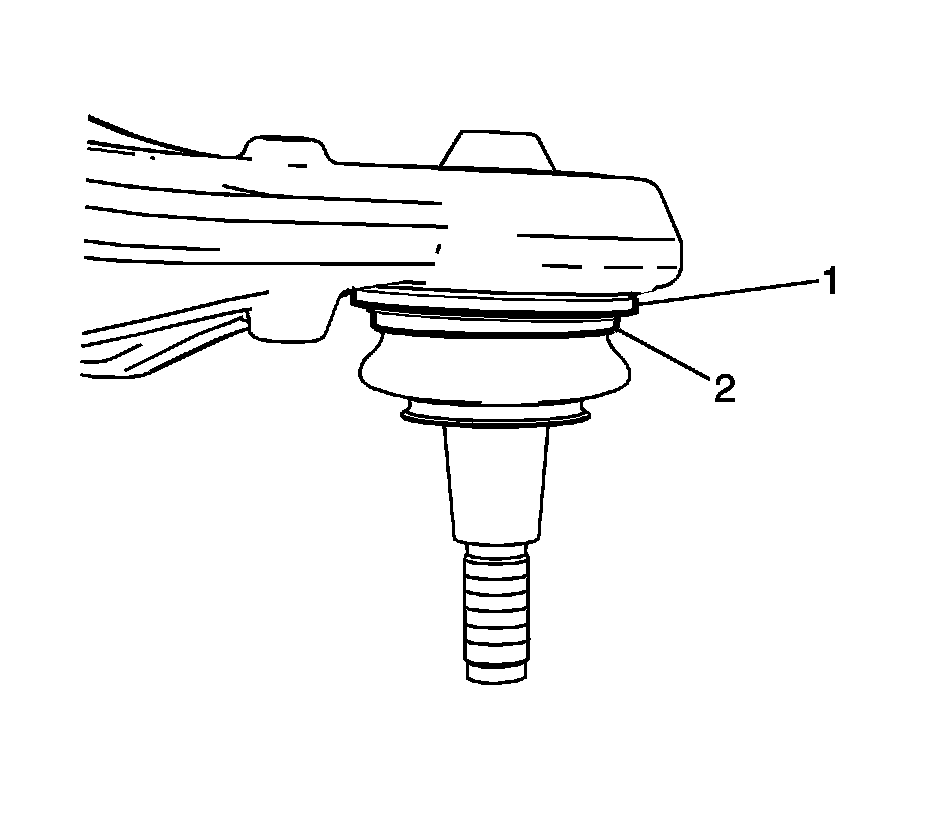 4. Ensure that the ball joint (2) is fully seated against the lower control arm (1).