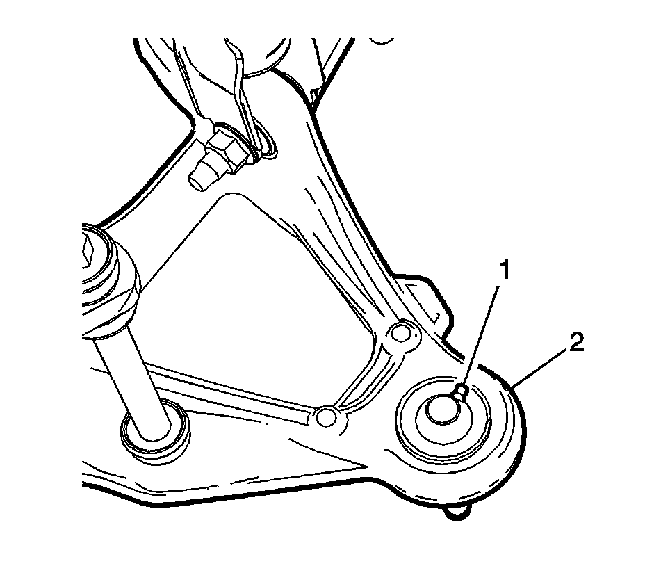 2. Align the lower ball joint grease fitting (1) with the channel (2) in the lower control arm