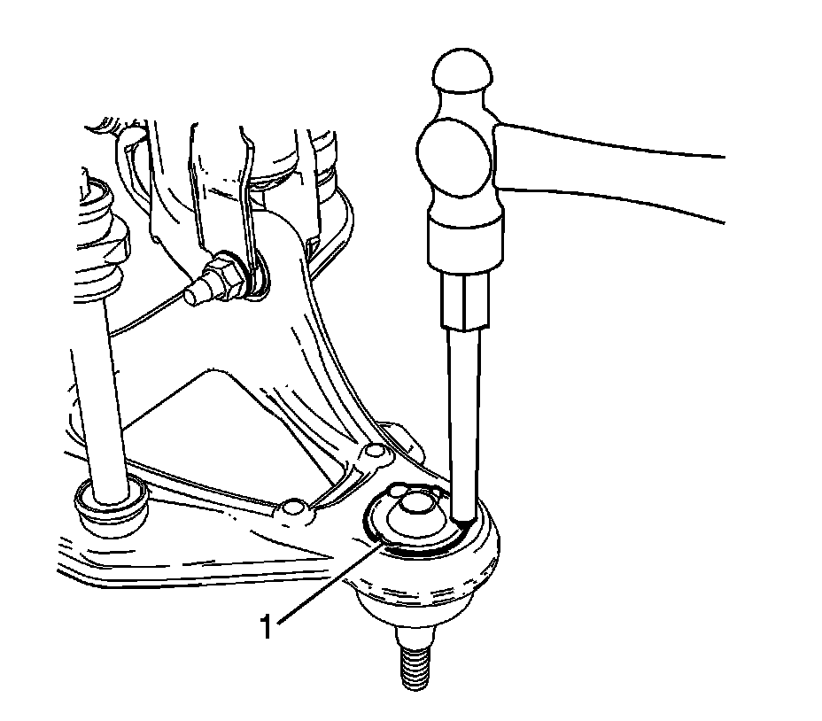 1. Position the lower ball joint (1) in the lower control arm.