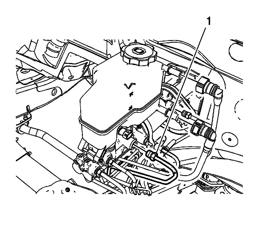 8. Disconnect the brake master cylinder left supply brake pipe fitting (1).