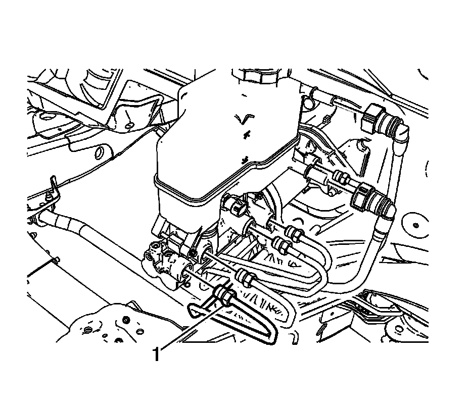 5. Disconnect the brake master cylinder reservoir return hose quick connect (1) and position the hose aside.