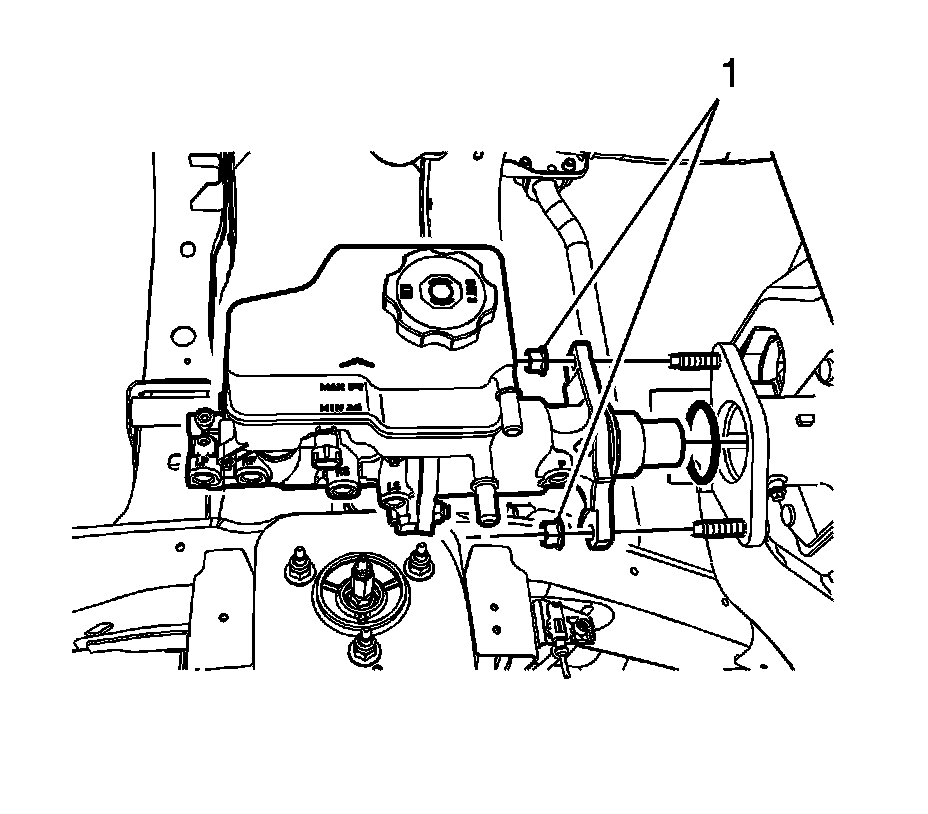 3. Install 2 new brake master cylinder nuts (1) and tighten to 33 Nm (24 lb ft).