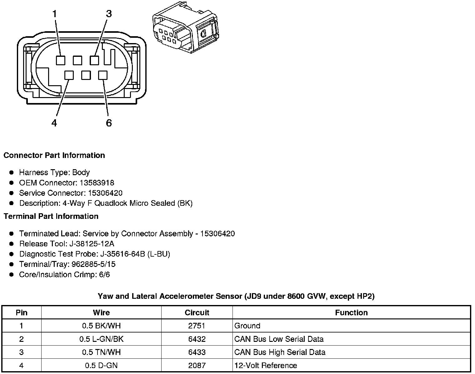 Yaw and Lateral Accelerometer Sensor (JD9 under 8600 GVW, except HP2)