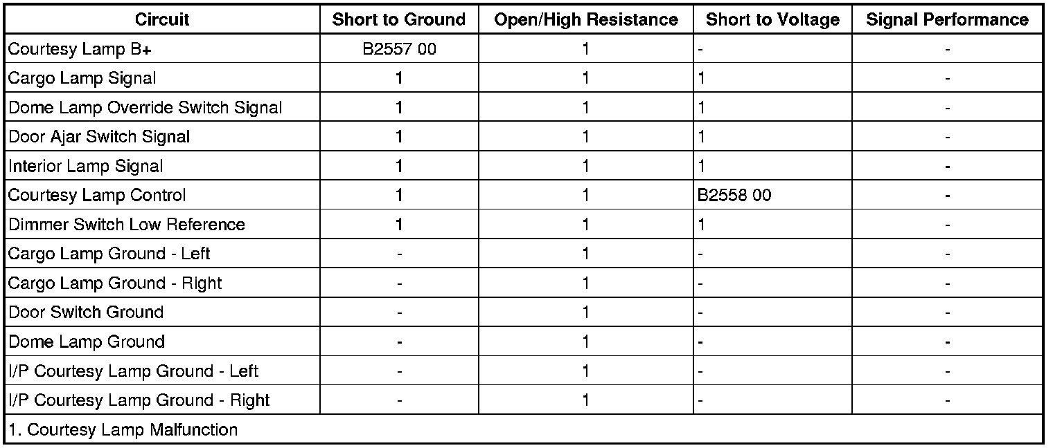 The interior courtesy lamps consist of the dome lamp, reading lamps, cargo lamps, and the left and right footwell lamps. Battery voltage is supplied to the courtesy lamps by the body control module (BCM) through an inadvertent power supply circuit. In the event that any of these lamps were to remain illuminated for a period of more than 20 minutes with the ignition switch in the OFF position, the BCM will deactivate the inadvertent power supply to prevent a total battery discharge condition. Courtesy lamp operation is controlled by the BCM through low side drive control circuits, and any time the inadvertent power supply is active the BCM turns on the courtesy lamps by grounding the control circuits. The BCM will activate the courtesy lamps using inputs from the dome lamp switch on the headlamp switch assembly or any of the door jamb switches. The dome lamp switch signal is monitored from battery voltage by the BCM and when the switch is turned on the signal circuit will be closed to the headlamp switch low reference circuit.