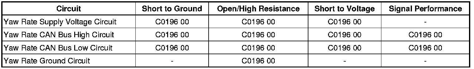 13. If all circuits test normal, replace the Yaw Rate/Lateral sensor.