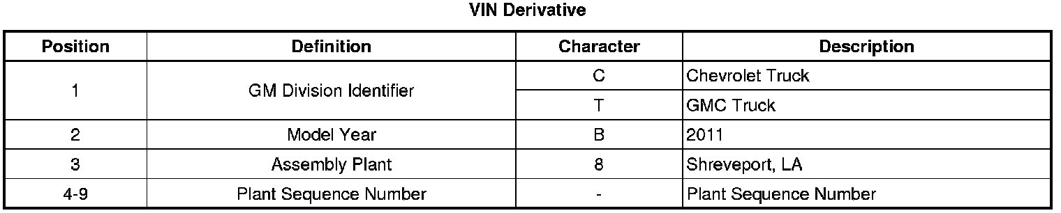 All engines and transmissions are stamped or laser etched with a partial VIN, which was derived from the complete VIN. A VIN derivative contains the following 9 positions: