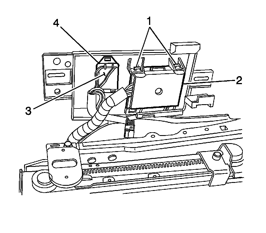 4. Release the tabs (4) that retain the seat switch (3) to the seat bezel.
