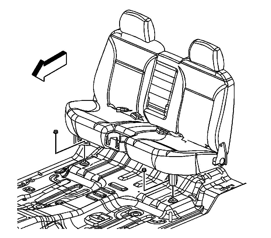1. Remove the 2 nuts securing the front legs of the rear bench seat to the floor studs.