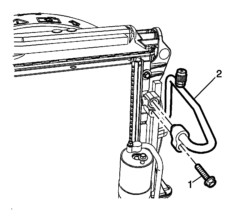 1. Install the discharge hose (2) to the condenser using new sealing washers. Refer to Air Conditioning System Seal Replacement (Air Conditioning System Seal Replacement).