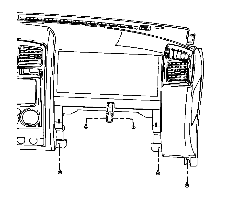 6. Remove the lower center I/P extension. Refer to Instrument Panel Lower Center Trim Replacement (Instrument Panel Lower Center Trim Replacement).