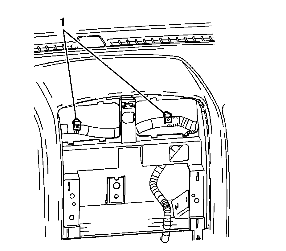 36. Reach through the center stack opening and remove the I/P wiring harness clips (1) from the HVAC vent.