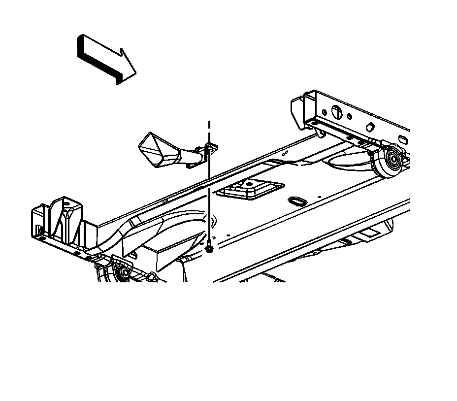 6. Remove the spare tire hoist guide mounting bolt from the crossmember.