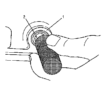 1. Carefully slide a new selector shaft seal (1) over the selector shaft (2) with the wide face of the steel case facing outward. Position the seal so that it is starting to enter the seal bore.