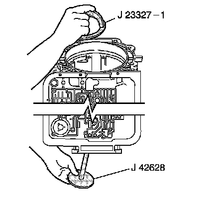 1. Install the J 23327-1 - compressor (bridge) and the J-42628 - plate.