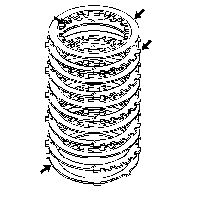 2. Stack the low and reverse clutch plate assembly on a flat surface in the following order: