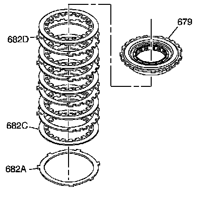 2. Five fiber plate assemblies (682C) and four steel plates (682D), starting with one fiber plate assembly and alternating with steel