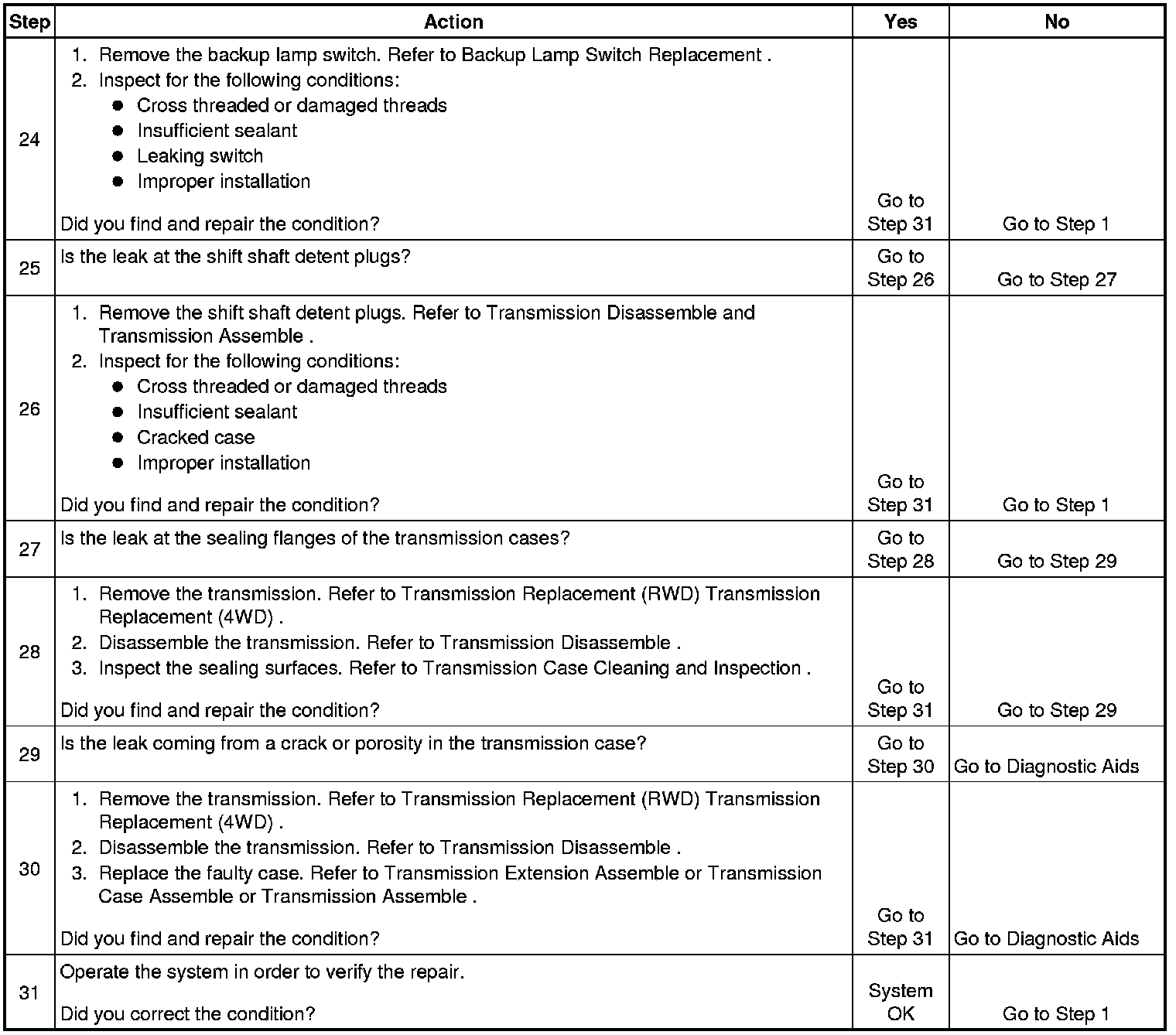 The numbers below refer to the step numbers on the diagnostic table.