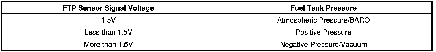 1. Ignition ON and fuel cap removed, verify that the Fuel Tank Pressure Sensor parameter is between 1.3-1.7 volts.