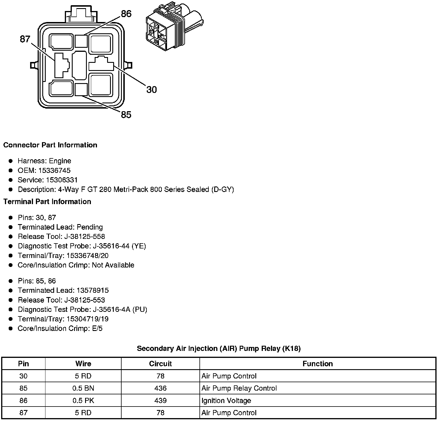 Secondary Air Injection (AIR) Pump Relay (K18)