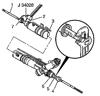 8. Place a torque wrench and the J-34028 - wrench on the flats of the steering linkage inner tie rod housing (7). Tighten the inner tie rod to 100 Nm (74 lb ft).
