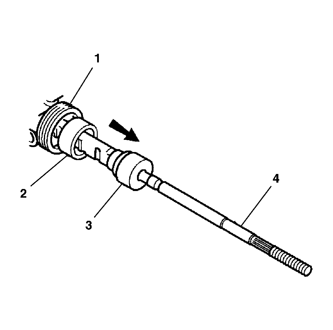 11. Rotate the right inner tie rod housing counterclockwise, while holding the rack stationary, until the right inner tie rod (1) separates from the rack.