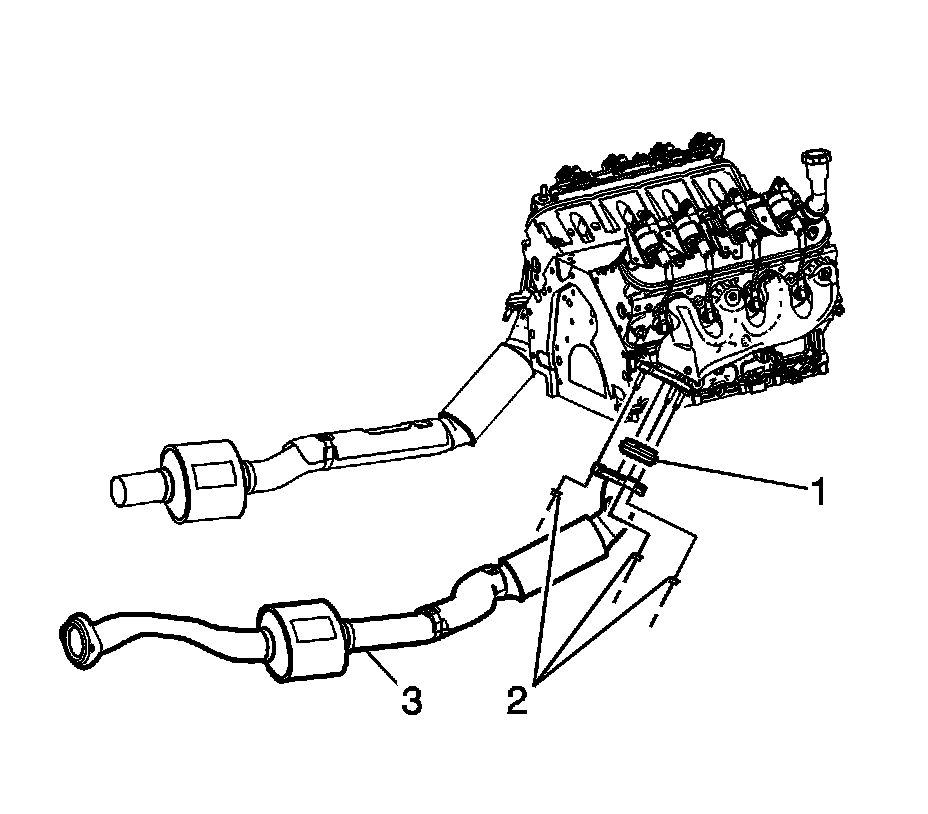 2. Remove the heated oxygen sensors (HO2S). Refer to Heated Oxygen Sensor Replacement - Bank 2 Sensor 1 (Heated Oxygen Sensor Replacement - Bank 2 Sensor 1) and Heated Oxygen Sensor Replacement - Bank 2 Sensor 2 (Heated Oxygen Sensor Replacement - Bank 2 Sensor 2).