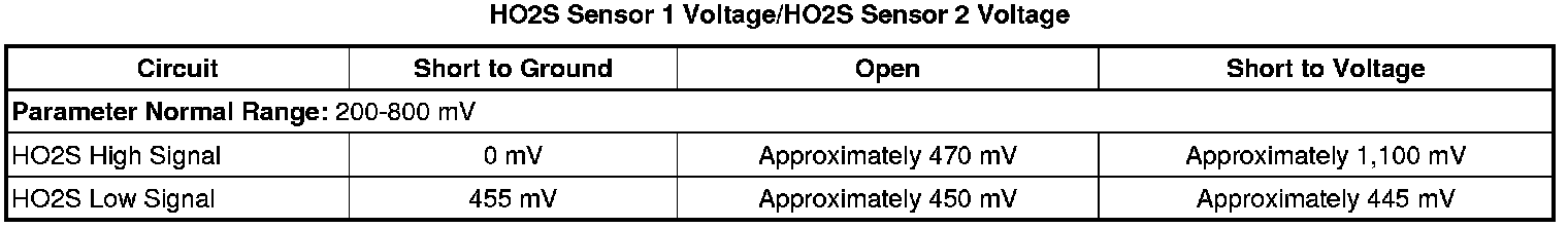 * The ECM detects that the HO2S voltage is less than 50 mV.