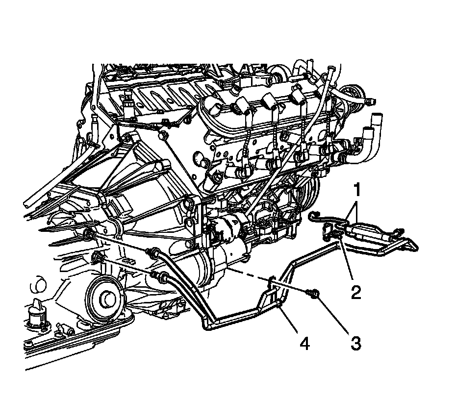 14. Install the transmission oil cooler line retaining bracket (4) and bolt (3) and tighten to 9 Nm (80 lb in).