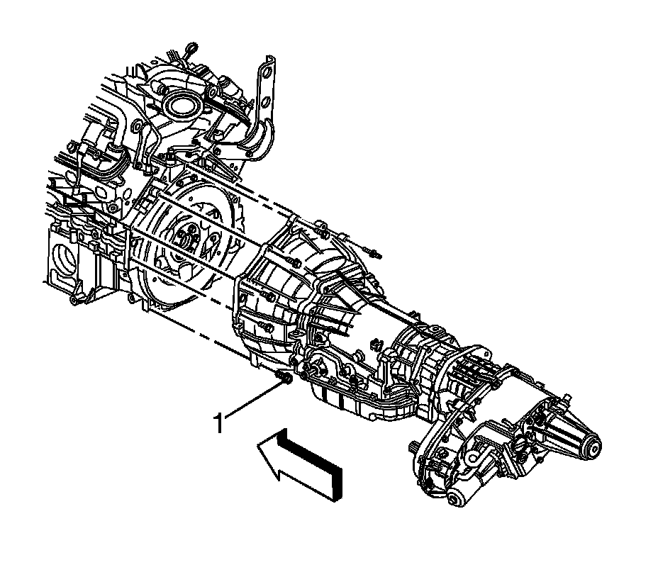 6. Install the 2 lower bellhousing bolts (1).
