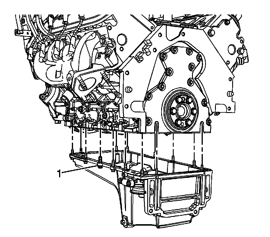 15. Remove the oil pan bolts (1).