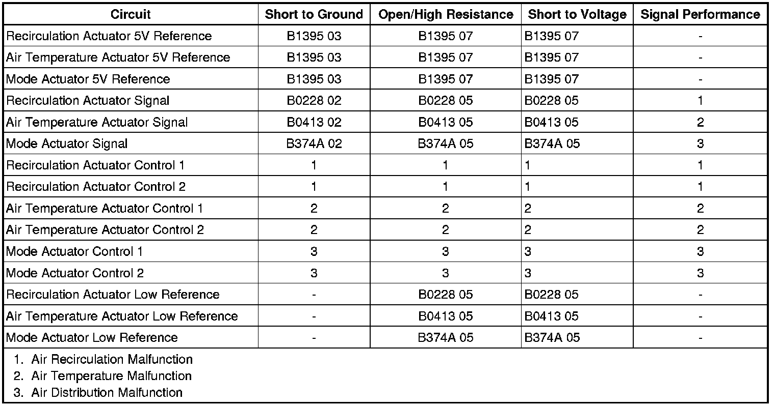 6. If all circuits test normal, replace the appropriate actuator and verify the DTC does not reset.