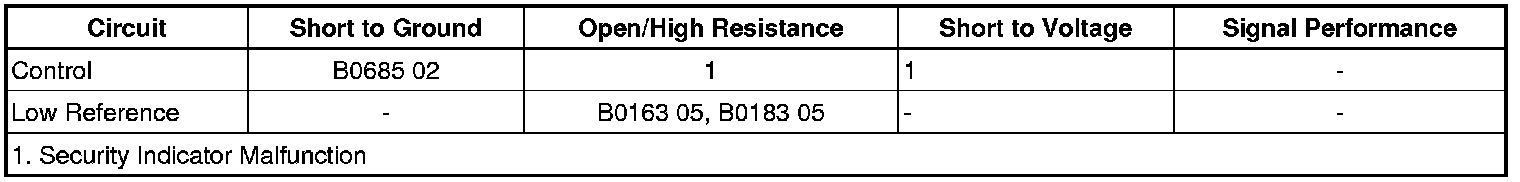 4. Ignition ON, command the security indicator ON and OFF with a scan tool. The test lamp should turn ON and OFF when changing between the commanded states.