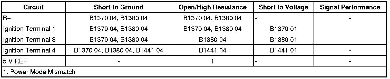 DTC B1370-B1379, B1380-B1389, or B1440-B1443