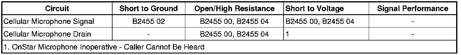 * The telematics communication interface control module detects an open, short to ground or short to voltage in the cellular phone microphone signal circuit for 10 seconds or greater.