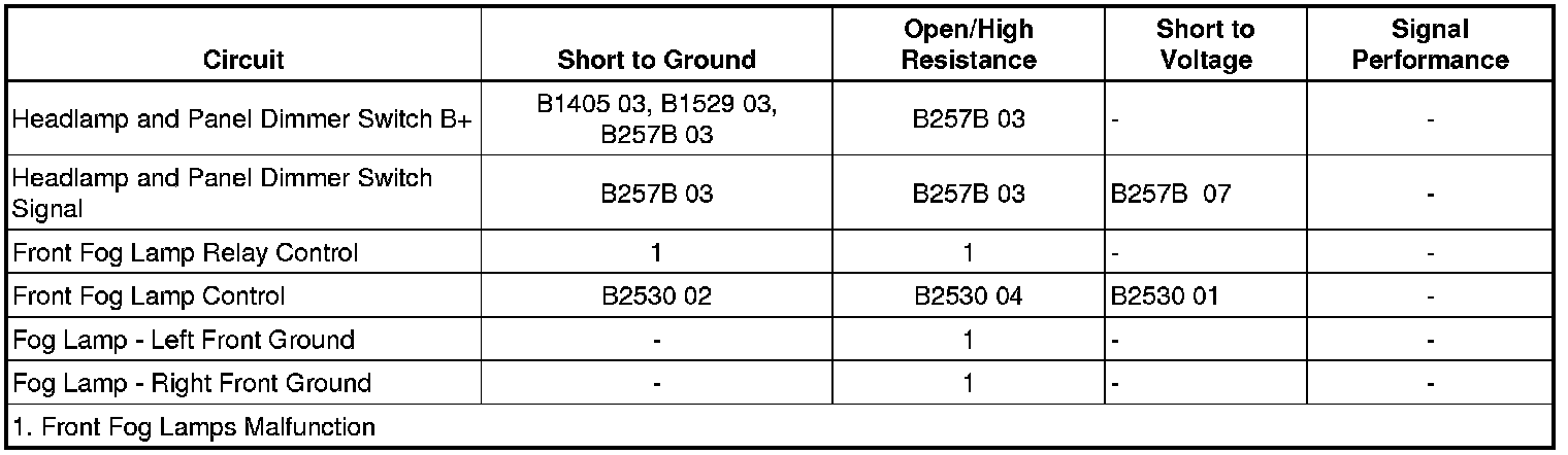 - Front Fog Lamps Control Circuit Short to Ground