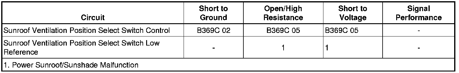 - Sunroof Ventilation Position Select Switch Circuit Short to Ground