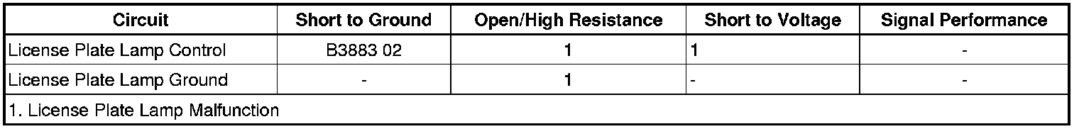 Ignition ON, command the License Plate Lamps Command ON and OFF with a scan tool. The license plate lamps should turn ON and OFF when changing between the commanded states.
