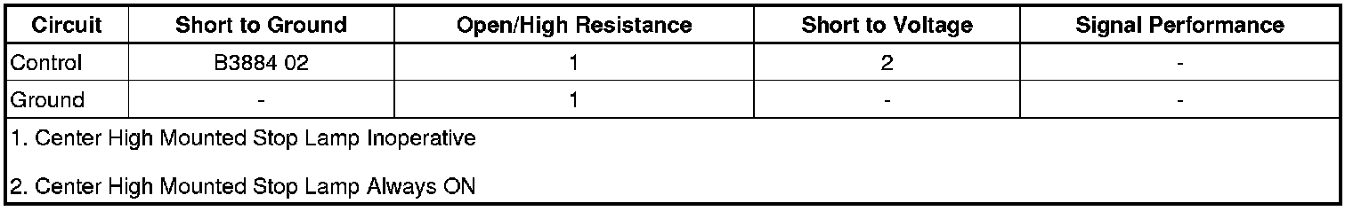 - Center High Mounted Brake Lamp Circuit Short to Ground