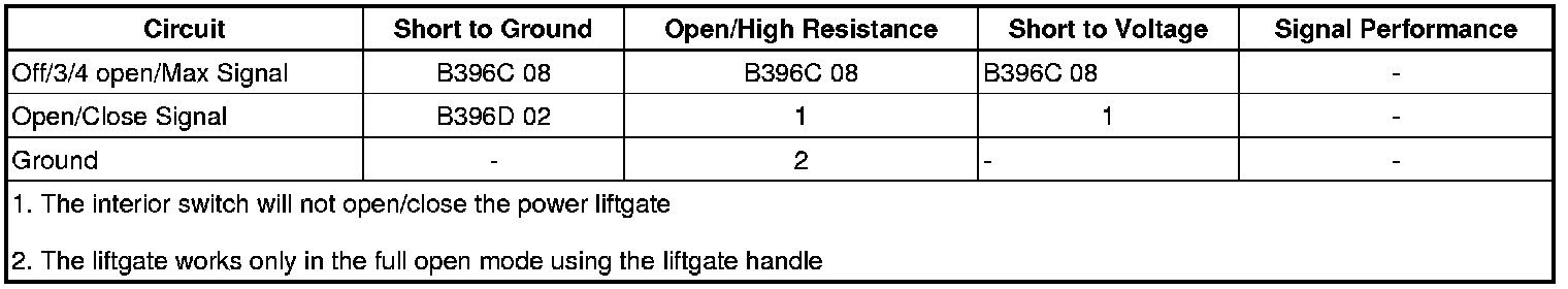 - Liftgate Mode Switch Circuit Performance Signal Invalid